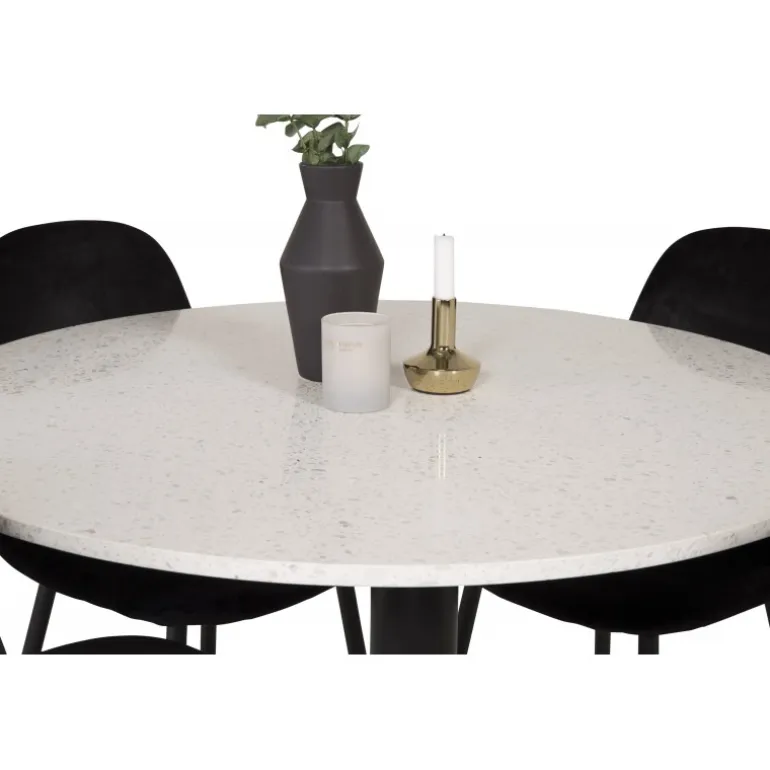 Nyd måltiderne omkring det elegante Razzia Rundt Spisebordssæt. Dette sæt inkluderer en stilfuld bordplade i terrazzo fra Razzia-serien og komfortable, bløde spisebordsstole fra Polar-serien. Ideelt til at skabe et hyggeligt og moderne spiseområde i dit hjem. Med dette sæt får du en Spisebordssæt, der er værd at længes efter!