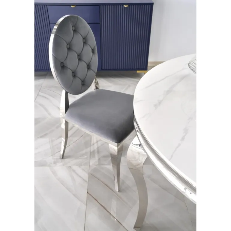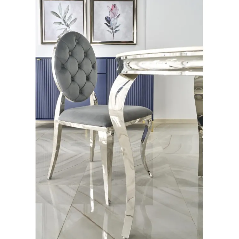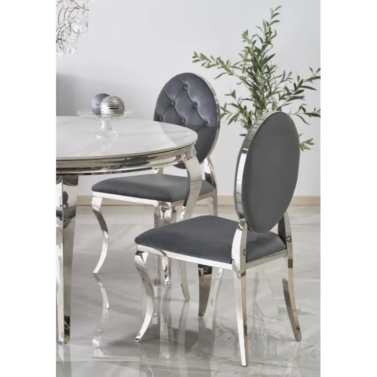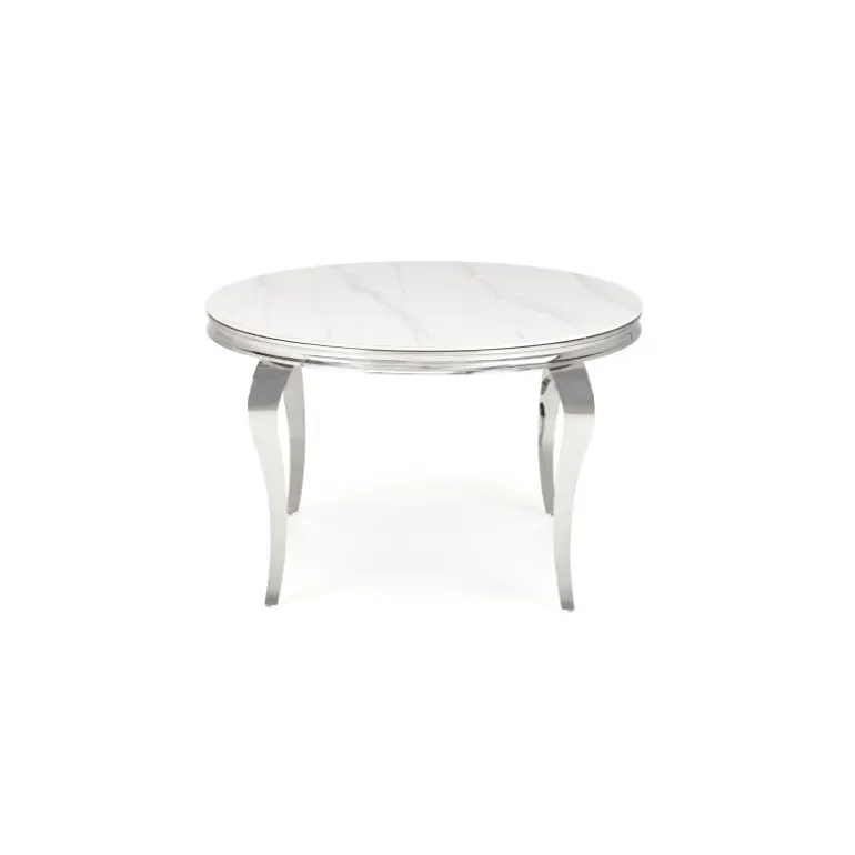 REGINALD bord kombinerer luksuriøst design og robust konstruktion for at give dit hjem et elegant præg. Med en bordplade i hvid marmor og ben i sølv rustfrit stål, er dette bord både stilfuldt og holdbart. Målene er 120/76/77 cm, hvilket gør det ideelt til både spise- og opholdsstuer. Materialerne består af sinteret sten og rustfrit stål, som sikrer langvarig kvalitet og let vedligeholdelse.