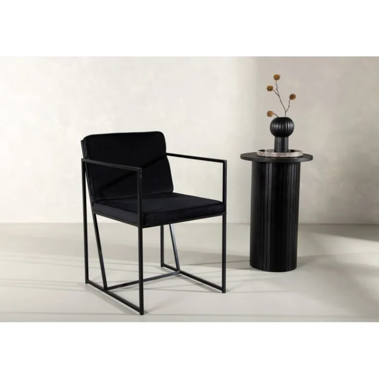 En stilfuld spisebordsstol i minimalistisk design, der er garanteret til at fange øjet! Denne spisebordsstol fra Richmond-serien tilhører Venture Home-kollektionen og har et iøjnefaldende, skandinavisk design med sæde og ryglæn i sort velourstof og en smal stålstruktur som ramme. Match den med et flot spisebord og nyd den vidunderlige kombination af komfort og stil!
