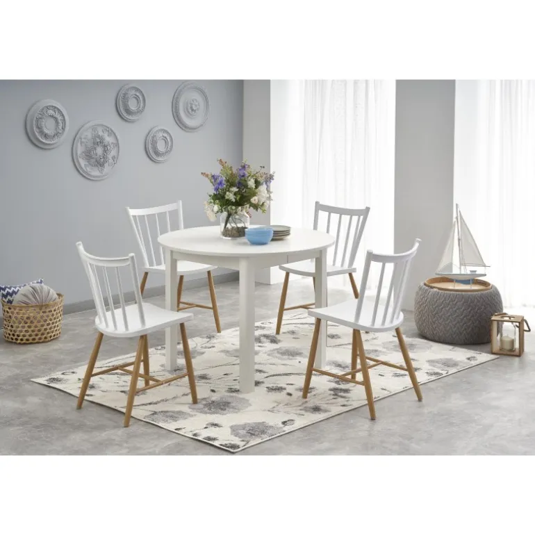 Oplev RINGO Spisebord med udtræk i hvid, det ideelle valg for enhver spisestue. Dette fleksible bord kan nemt udvides fra 102 cm til 142 cm, hvilket gør det perfekt til både små og store sammenkomster. Lavet af holdbar lamineret spånplade og lamineret MDF, sikrer dette bord både stil og funktionalitet. Med sit elegante hvide design passer det ind i enhver moderne indretning.