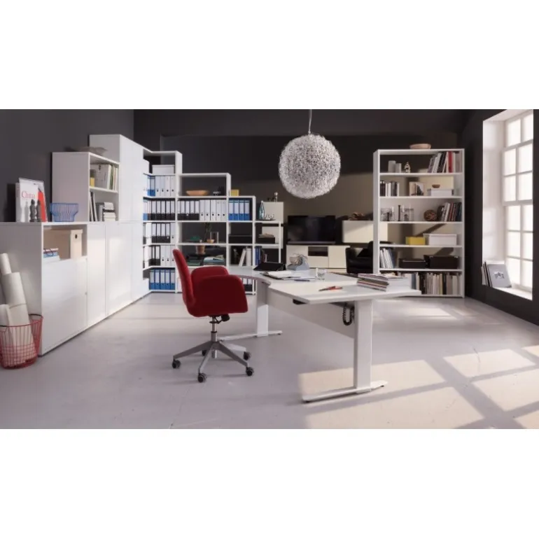 Rio reol med 4 hylder i hvid. I Rio serien findes der skriveborde, kassetter og reoler, som kan kombineres med forskellige låger, skuffer og greb. Rio er et fleksibelt system så du selv kan sammensætte det efter dit behov.