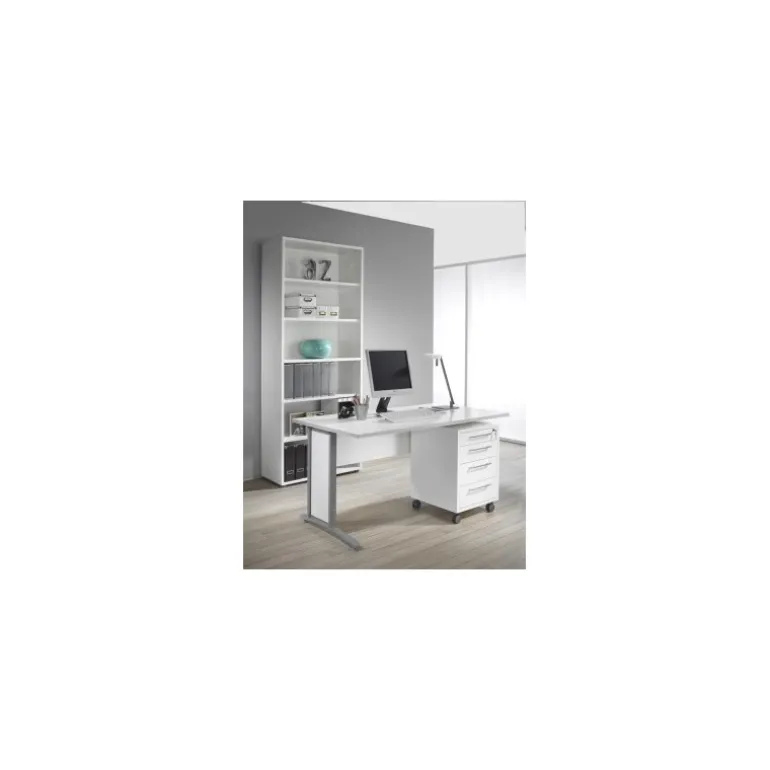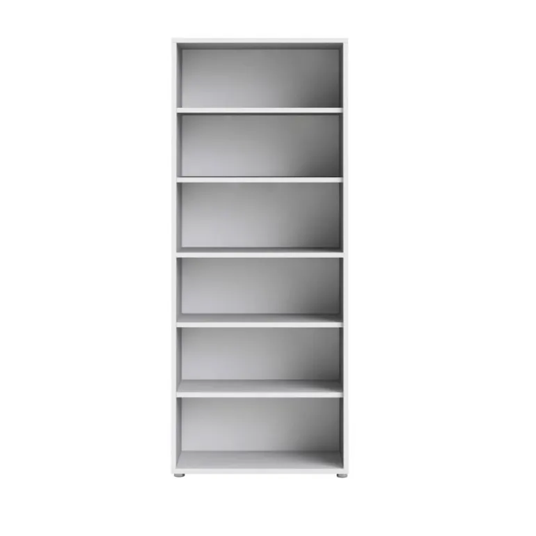 Rio reol med 5 hylder i hvid. I Rio serien findes der skriveborde, kassetter og reoler, som kan kombineres med forskellige låger, skuffer og greb. Rio er et fleksibelt system så du selv kan sammensætte det efter dit behov.