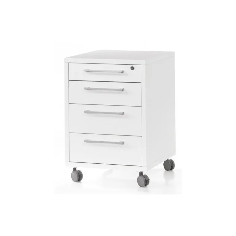 Rio skuffesektion i hvid, på hjul og med lås. Hjul med stop funktion. I Rio serien findes der skriveborde, kassetter og reoler, som kan kombineres med forskellige låger, skuffer og greb. Rio er et fleksibelt system så du selv kan sammensætte det efter dit behov.