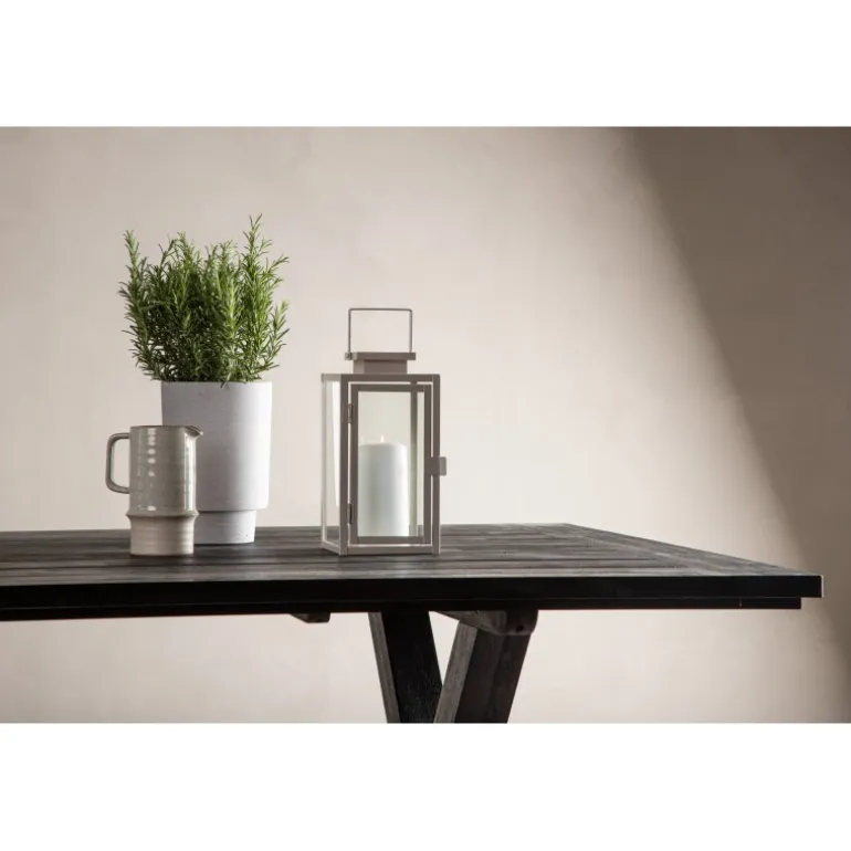 Rives er et af vores smukke spiseborde i sortmalet akacietræ. Bordets rustikke design med en stilfuld krydsformet ramme giver hele terrassen en vidunderlig atmosfære. Inviter venner og familie til mange dejlige øjeblikke sammen, her sidder du lige så godt som komfortabelt. Under vores vedligeholdelsesråd kan du læse mere om, hvordan du bedst plejer dit akaciebord. Vedligeholdelsesråd: For at dine udendørsmøbler i akacietræ/hårdttræ bevarer deres finish, bør de olieres regelmæssigt. Da træet i sig selv ikke er så fedtholdigt, skal det olieres lidt nu og da, selv i sæsonen. Nyindkøbte møbler bør mættes med olie, påfør flere lag i træk, så træet absorberer så meget olie som muligt. Aftør overskydende olie.