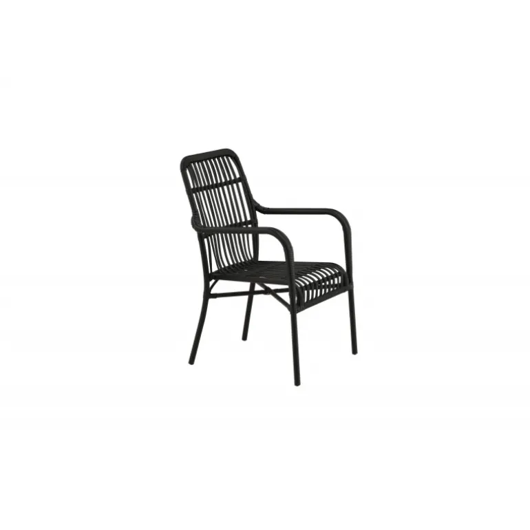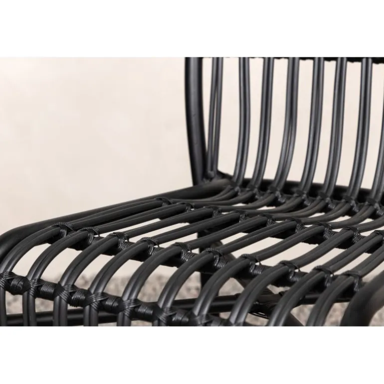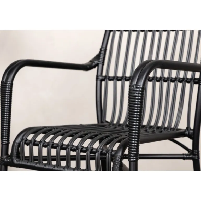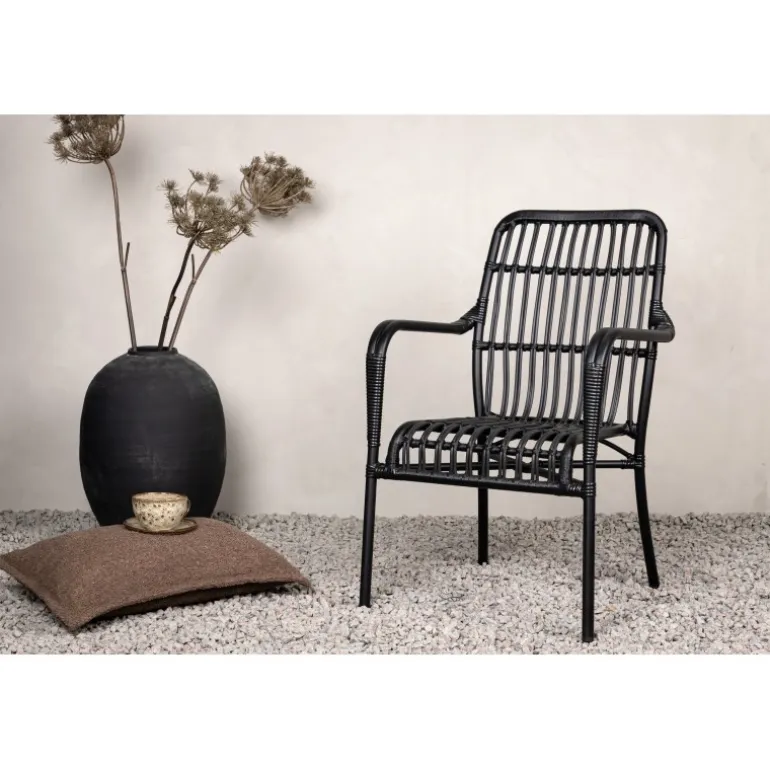 Rizal Lounge Stolen fra Rizal serien vil tilføje et moderne præg som blikfang i dit udendørs rum! Denne stol har en afslappende ramme konstruktion med integrerede armlæn i sort aluminium og detaljer i flettet rattan. Placer den i loungehjørnet eller alene som en stil-ikon – kun fantasien sætter grænser!