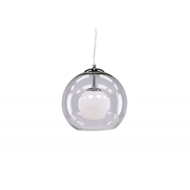 Med Roche loftlampe får du en elegant og stilfuld lampe til at hænge over spisebordet, sofabordet eller i soveværelset. Lampen har en smuk beslag i sølvfarvet jern og en rund lampeskærm i gennemsigtigt glas, der giver et smukt lys. Med sit enkle design passer denne lampe i de fleste rum og indretningsstile og er ikke en lampe, du bliver træt af med det samme.