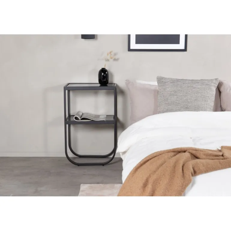 Giv dit soveværelse et moderne præg med Rocker Natbord i sort og gråt røgfarvet glas. Dette elegante natbord kombinerer glas og stål for et stilfuldt og funktionelt design. Perfekt til opbevaring af dine natlige nødvendigheder. Dette bord kræver montering.