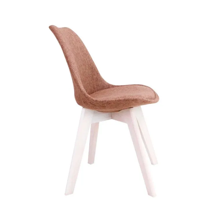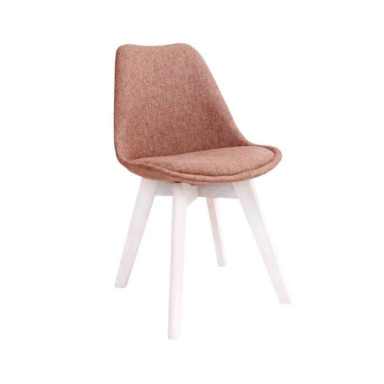 Rosa skalstol med fuld polstret sæde og ben i hvid olieret eg. Benene har runde kanter, og giver stolen et rigtig flot udtryk