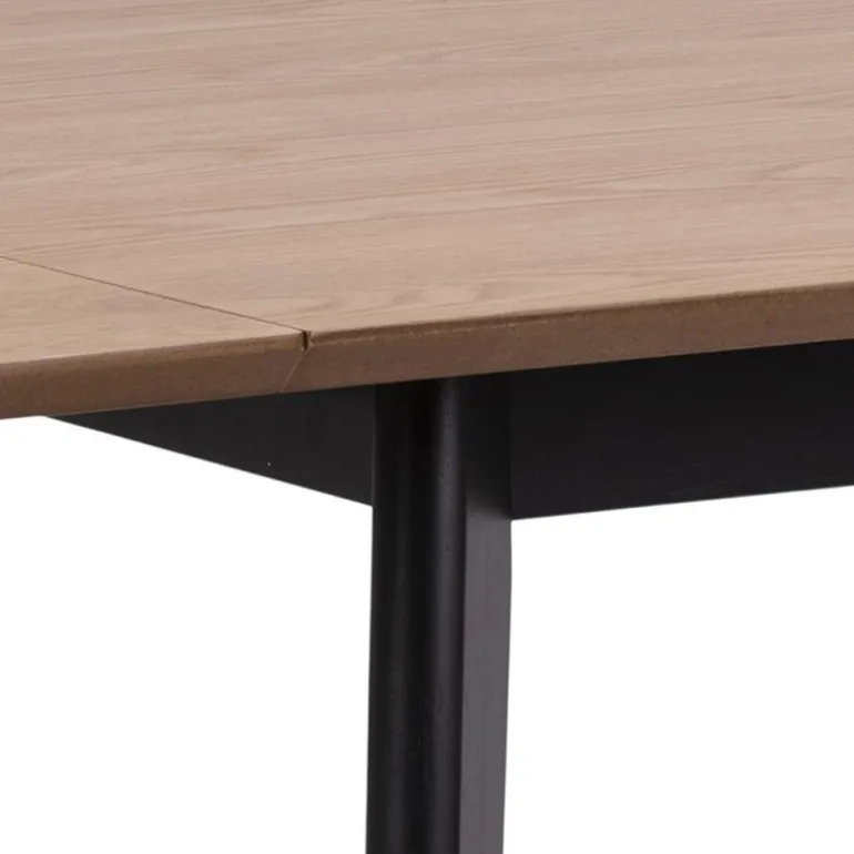 Roxby spisebord bordplade finer eg, lak tillægsplade 1 stk, stel gummitræ, sortmalet L:80/120 B:80 H:76 cm