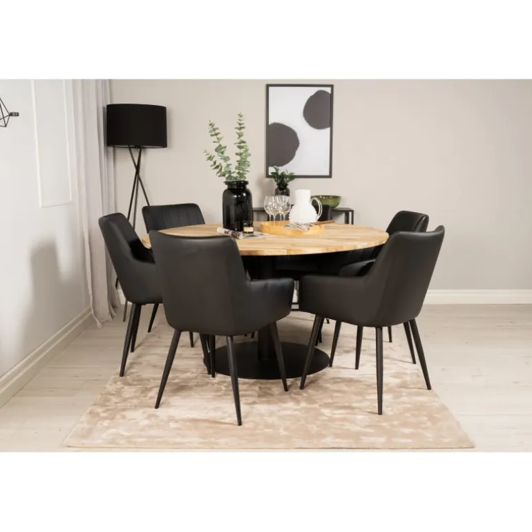 Moderne og hyggeligt! Spisebordet Cirebon sammen med komfortable spisebordsstole giver dig et hjemligt madområde at længes efter. Stolene er robuste og godt polstrede – her sidder du gerne i lang tid og nyder godt selskab med venner!