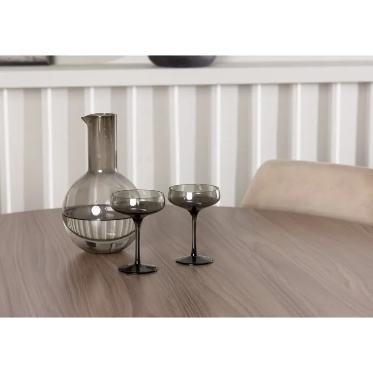 - Harmonisk design: Valnøddefarvede stålstoleben komplementerer bordet.