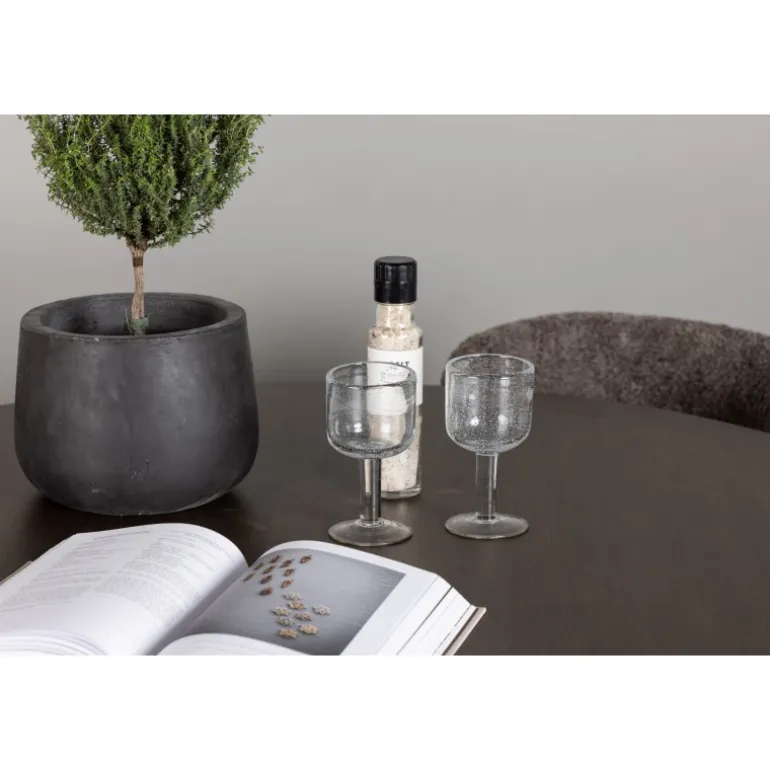 - Moderne design med slank bordplade og buede ben