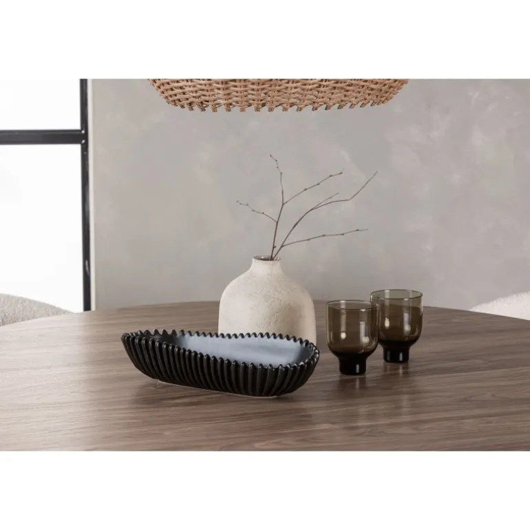 - Elegant design: Rundt MDF spisebord med snoet cylindrisk base.