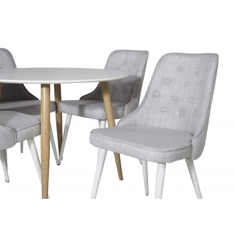 - Materialer af høj kvalitet: Hvid MDF-bordplade og lys grå Velvet Deluxe stole i polyester.