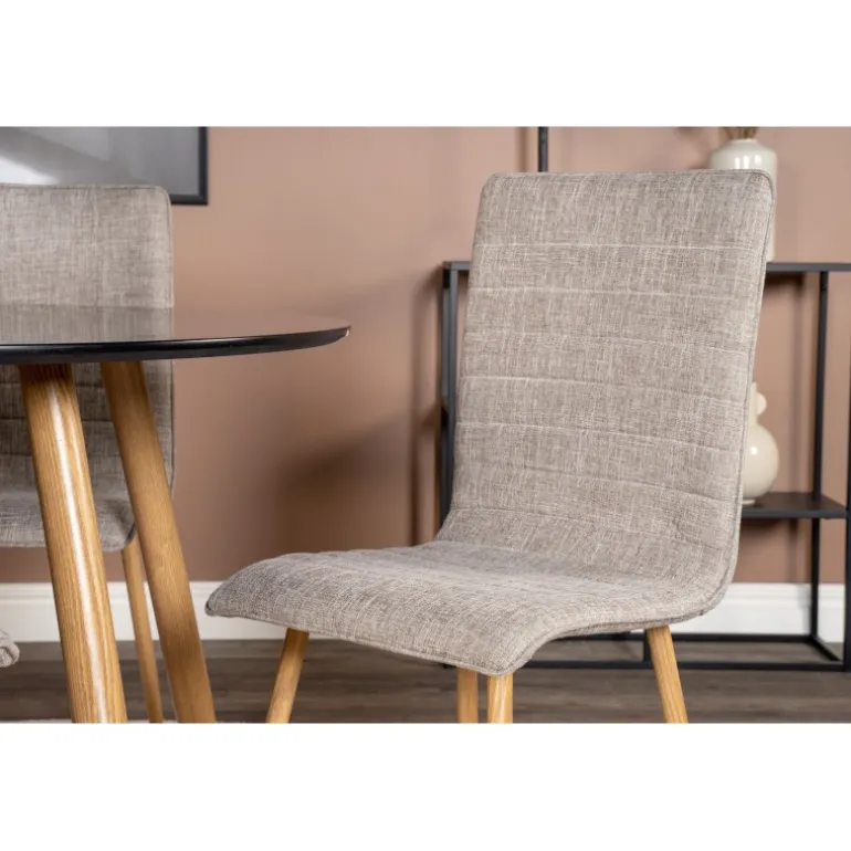 - Komfortable stole: Lys grå polyester linned, der giver komfort og elegance.