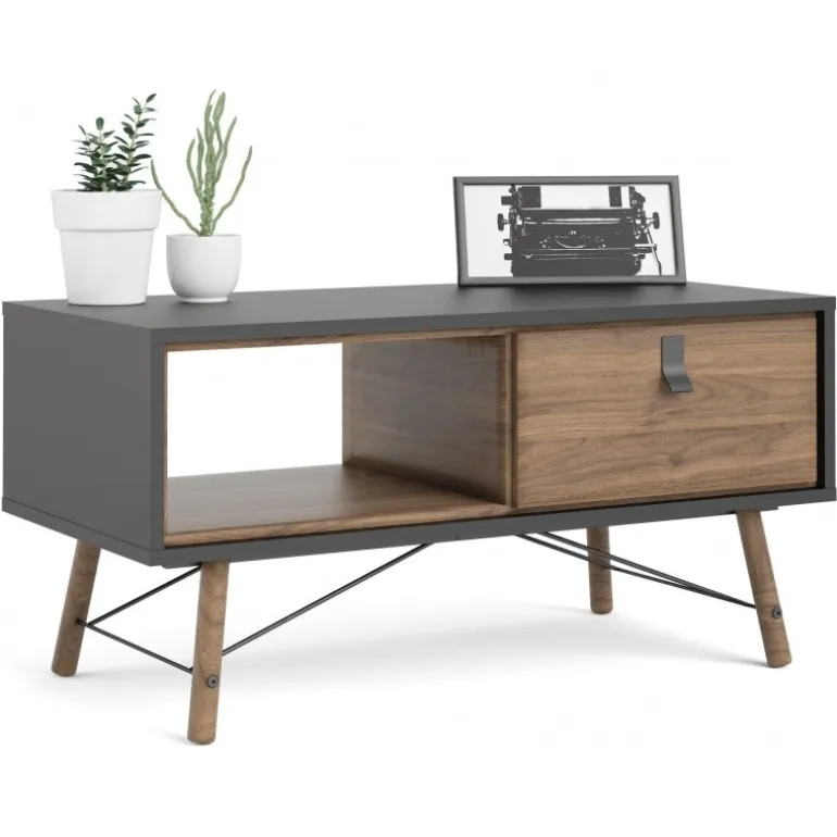 Ry Sofabord med 1 skuffe – Valnødlook/Mat Sort