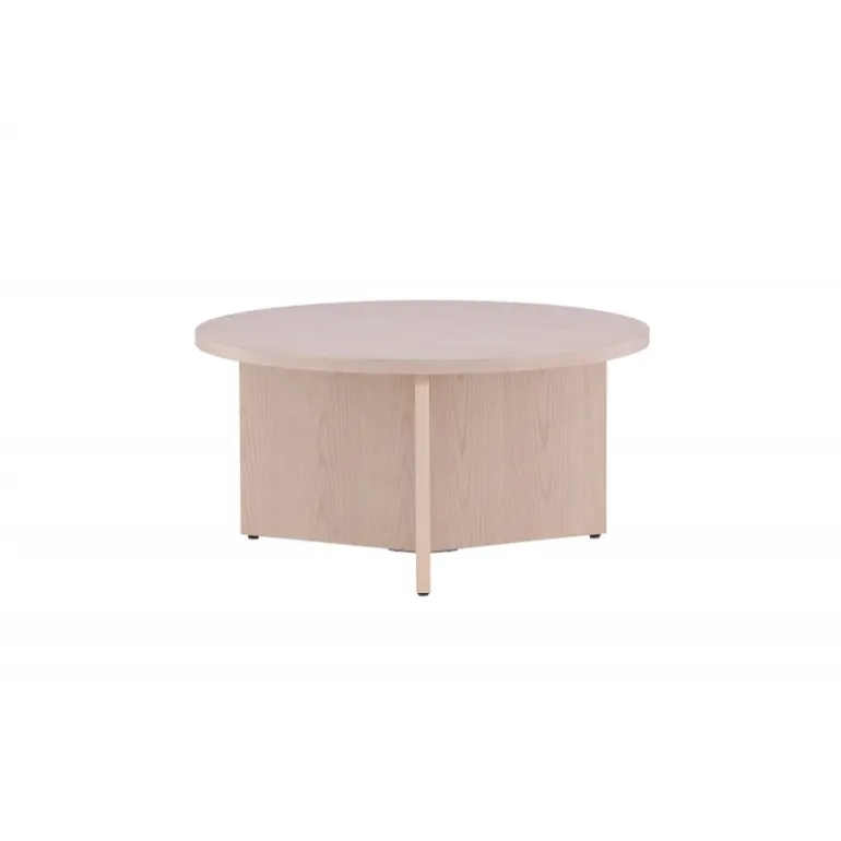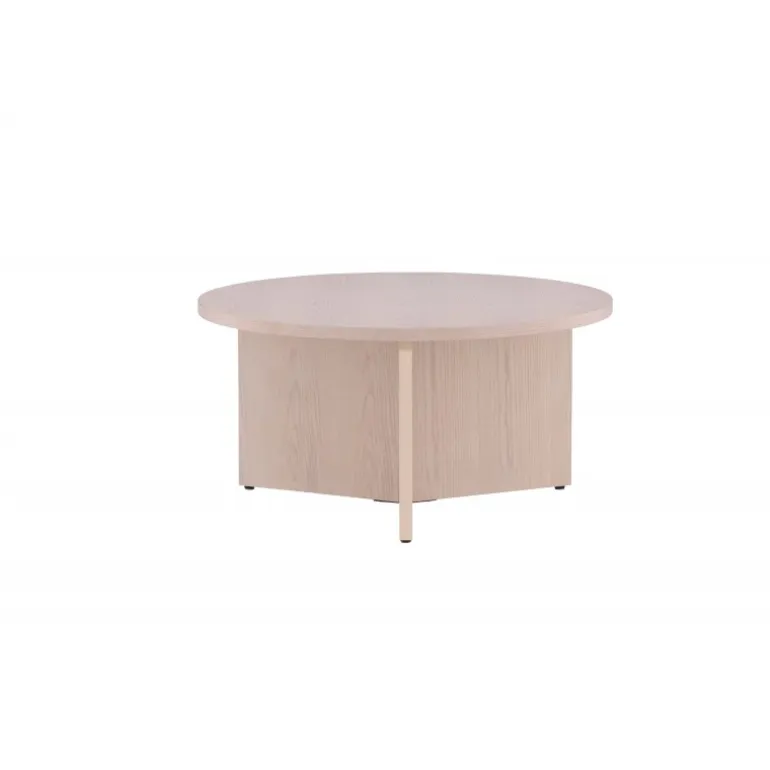 - Moderne design: Runde top i hvidvasket MDF og dekorativ base.
