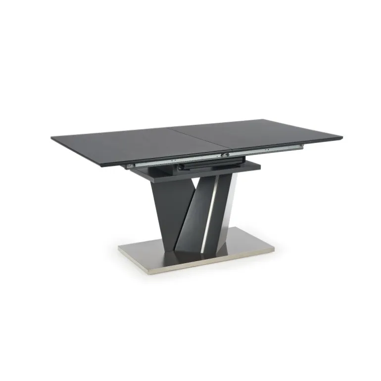 Oplev den perfekte blanding af stil og funktionalitet med SALVADOR Spisebord med udtræket. Dette elegante bord har en mørkegrå glasplade og lakerede MDF-ben, der tilføjer et moderne touch til din spisestue. Med dimensionerne 160-200/90/77cm tilbyder bordet rigelig plads til både hverdagsmåltider og festlige sammenkomster. Den rustfri stål konstruktion sikrer holdbarhed og stabilitet, mens udtræksfunktionen gør det nemt at tilpasse bordet til dine behov.
