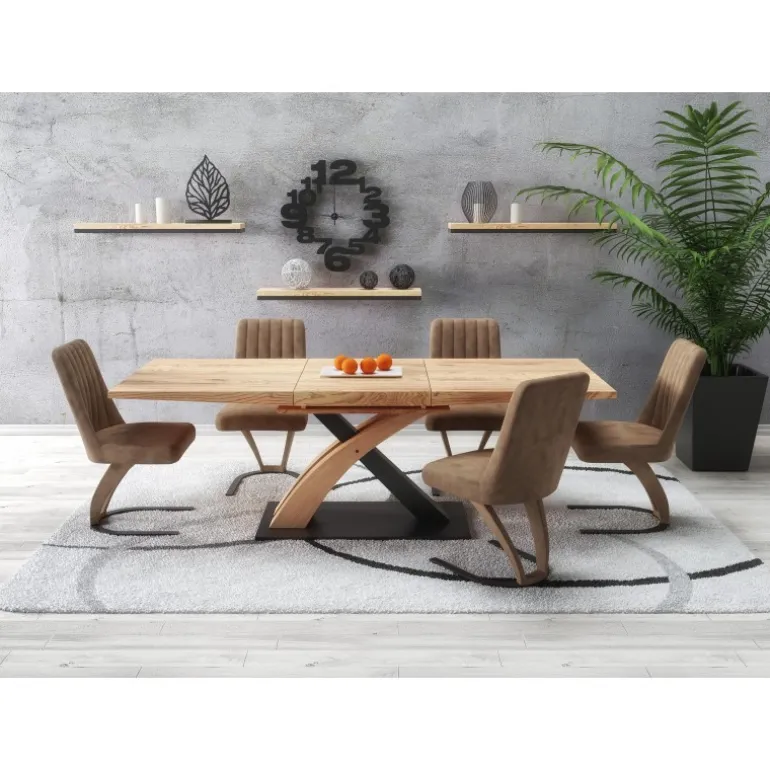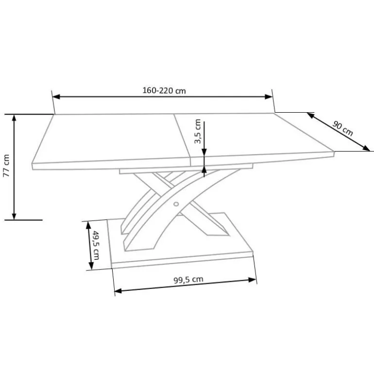 - Spisebord med udtræk: Justerbar størrelse fra 160 cm til 220 cm, ideelt til forskellige behov.
