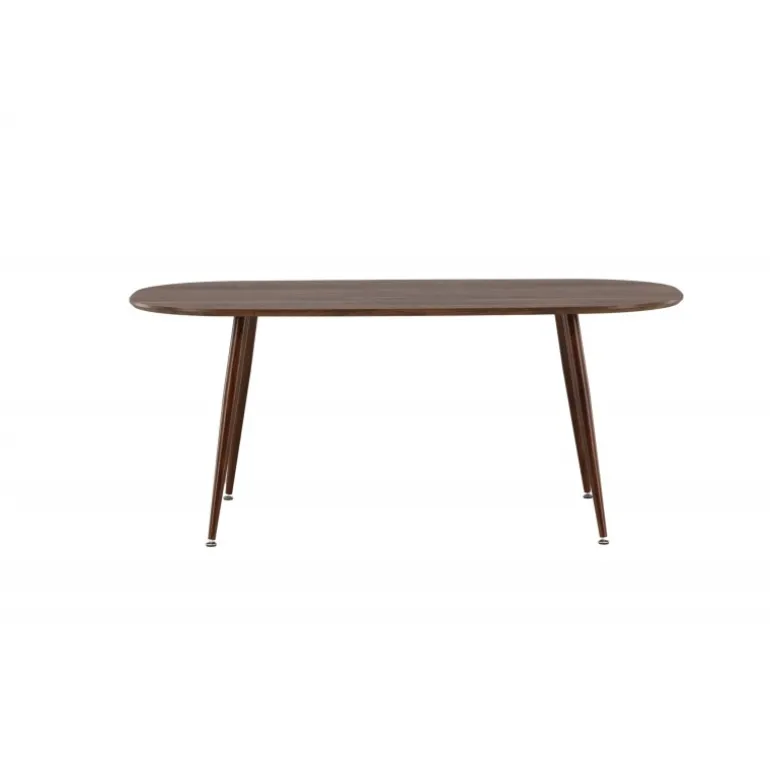 Sanford er vores populære spisebord i et minimalistisk og klassisk design. Den ovale bordplade er tynd i mørkebrun MDF, og bordbenene er let skrånende i brunt metal. Designet har indflydelser fra Skandinavien og står tidens prøve. Indret stuen i jordfarver og skab en varm atmosfære i hjemmets hjerte. Her kan familien samles til hyggelige måltider! Mål: 180x90x75 cm.