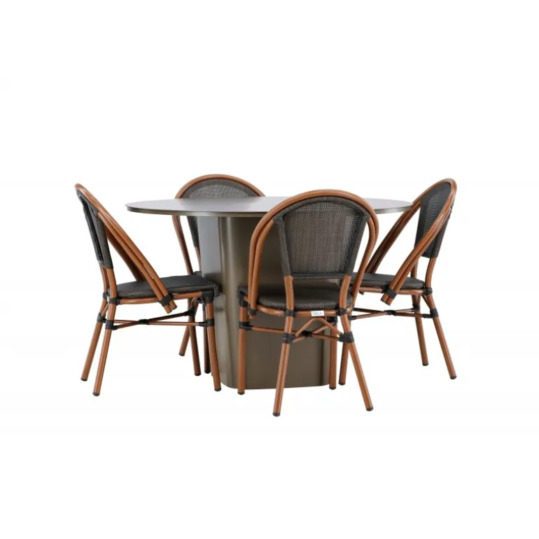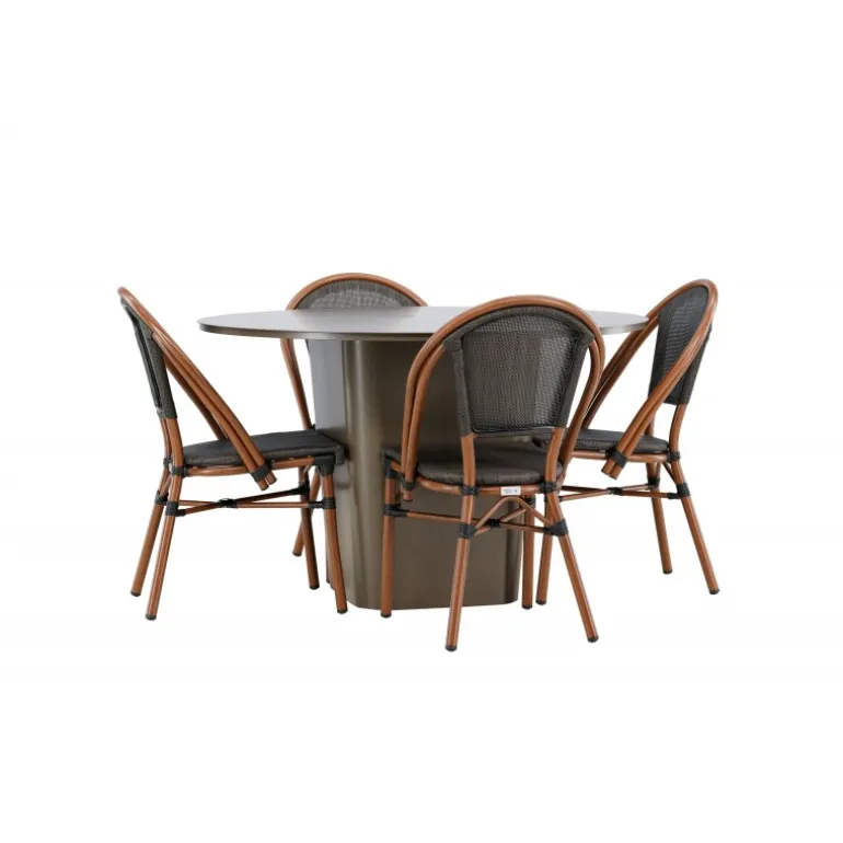 - Sæt: Inkluderer et rundt bord og fire stole.