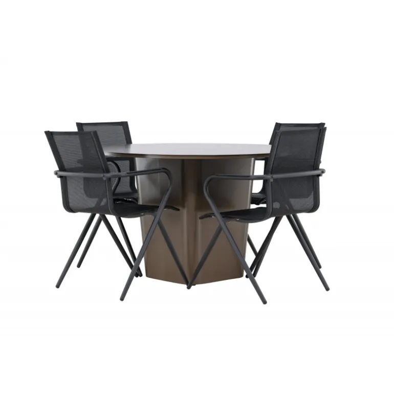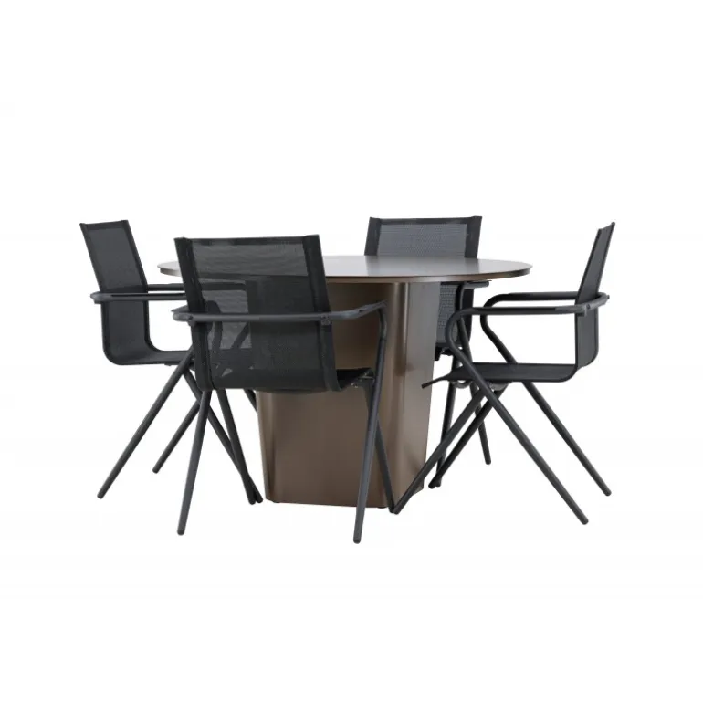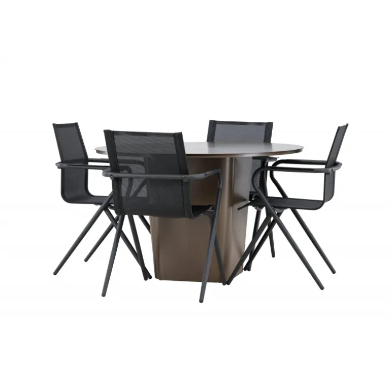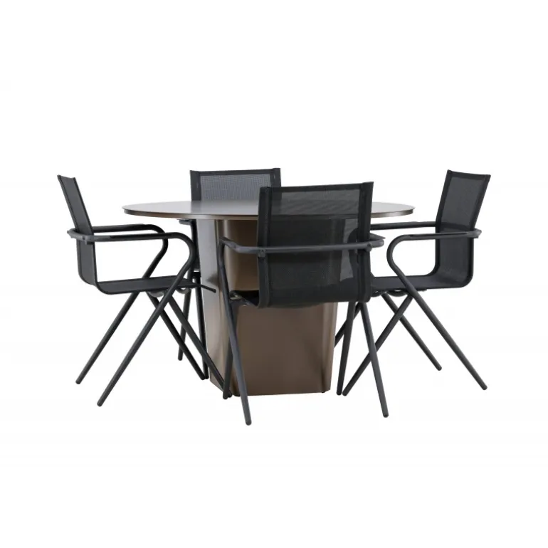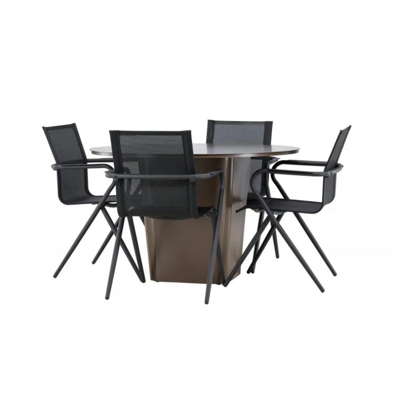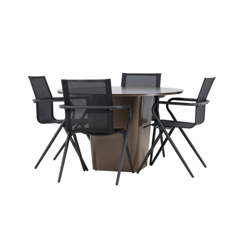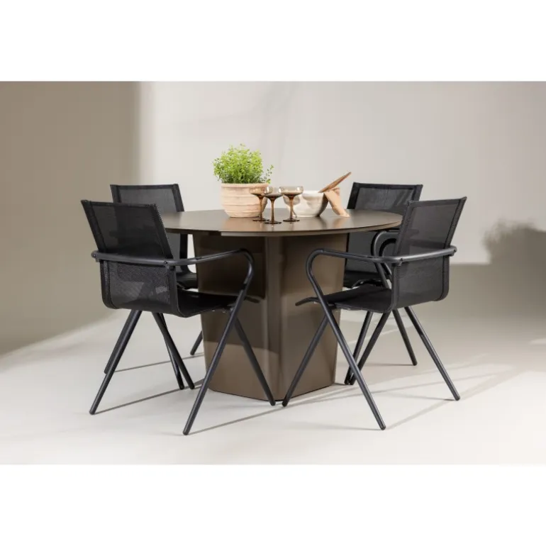 - Elegant design: Santa-bordet i brun aluminium og Alina-stolene i sort aluminium tilføjer klasse til dit udendørsområde.