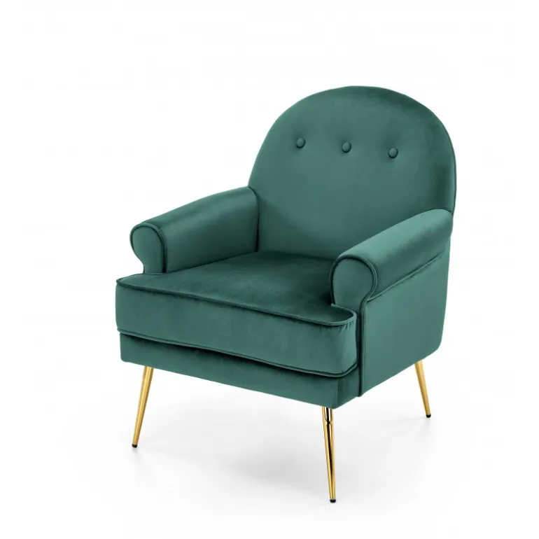 Opdag den elegante SANTI lænestol i mørkegrøn og guld, som kombinerer komfort og luksus i ét møbel. Med det bløde fløjlstof og de stilfulde kromstålben tilføjer denne stol en sofistikeret touch til enhver stue eller læsehjørne. Perfekt til afslapning efter en lang dag, tilbyder SANTI lænestolen både stil og funktionalitet. Dimensionerne på 74/74/88/45 cm gør den ideel til mindre rum, mens den mørkegrønne polstring og guldfarvede ben giver et moderne udtryk. Forbedr dit hjem med denne unikke og komfortable lænestol.
