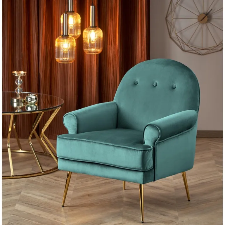 - Stilfuldt Design: Mørkegrøn fløjl og guldfarvede kromstålben giver et moderne og sofistikeret udseende.