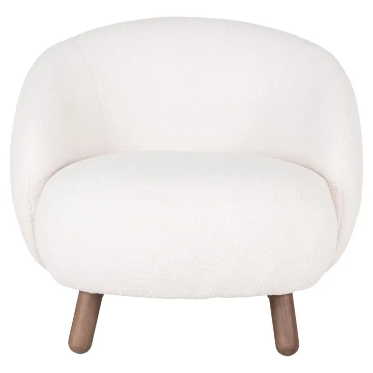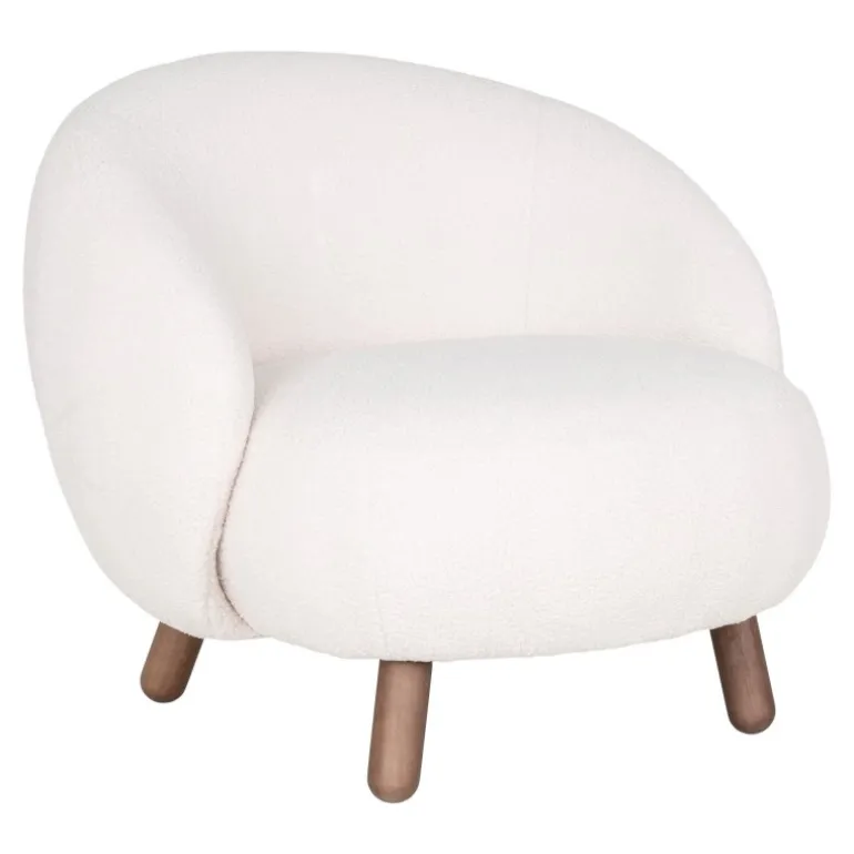 Savona Lænestol – Lænestol i hvid kunstig lammeskind med valnødfarvede ben