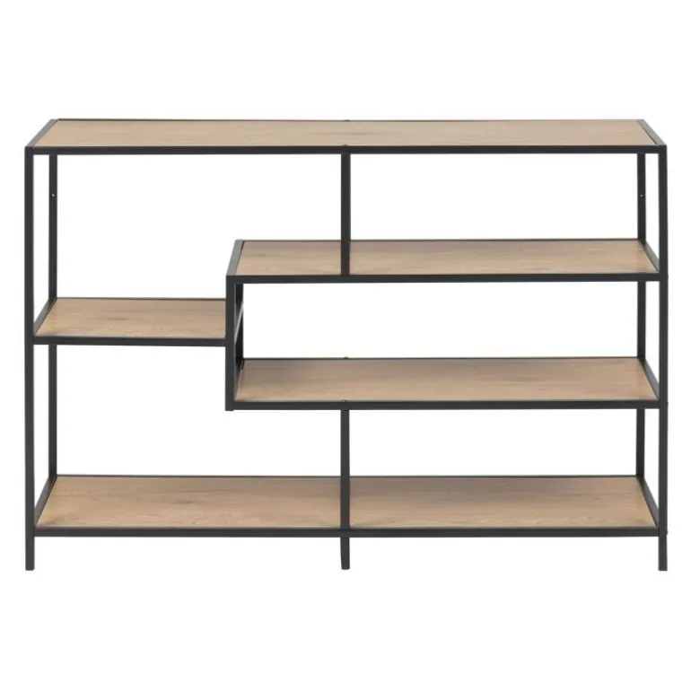 Cristal bogreol er udført med 3 træfarvede hylder i vild eg, der er placeret asymmetrisk i den slanke sort metal ramme. Det nytænkende nordisk design giver mulighed for at placere bogreolen ud i rummet, men reolen kan selvfølgelig også stilles langs en væg.