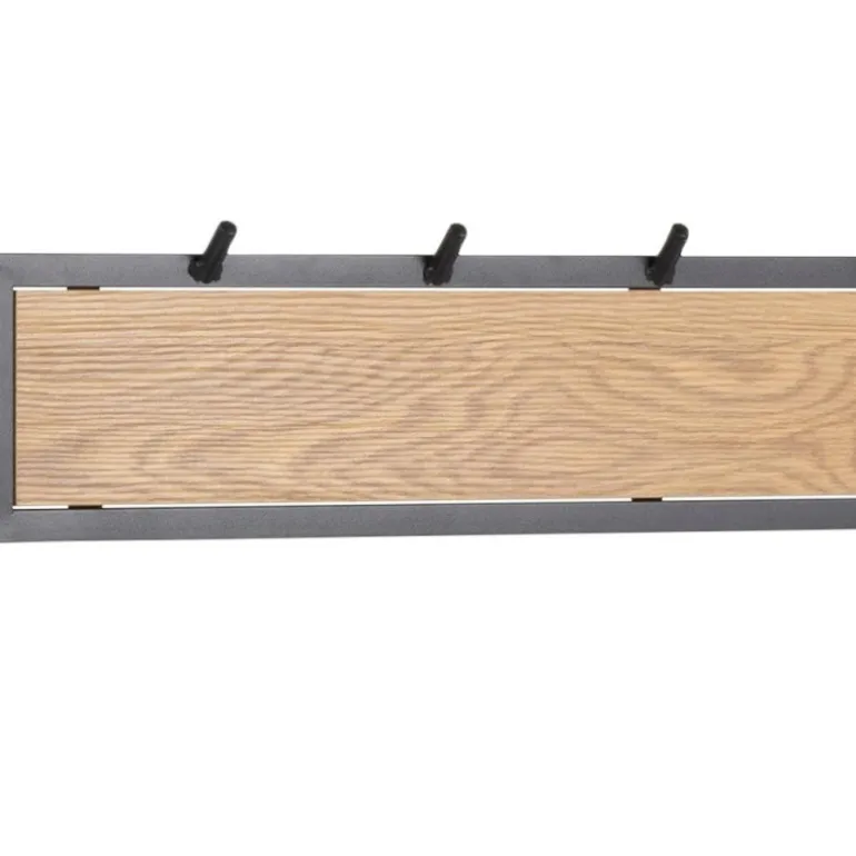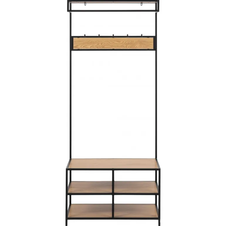 Seaford garderobestativ hylder papir vild eg 3 stk, knage 5 stk, stel metal pulverlakeret ru, mat sort L:77 B:40 H:185 cm