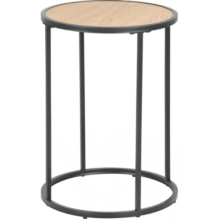 Seaford hjørnebord papir vild eg 3, stel metal ru pulverlakeret, mat sort, 5 Ø:40 H:55 cm