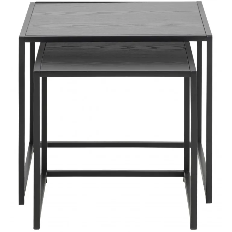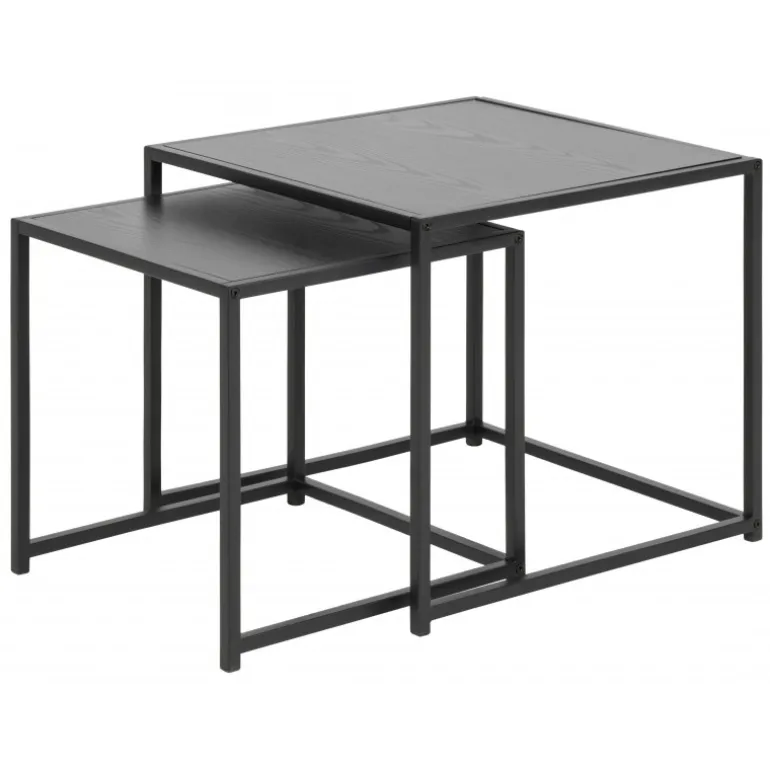 Seaford indskudsborde 2 stk melamin ask sort, stel metal pulverlakeret ru, mat sort, 5 L:50 B:50 H:45 cm
