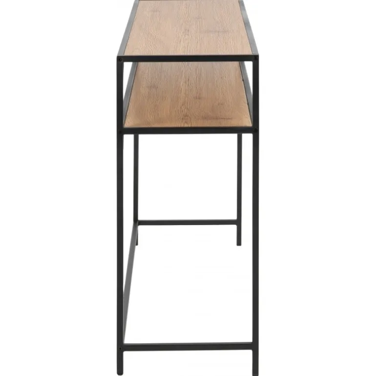 Seaford konsolbord papir vild eg, hylde 1 stk stel metal pulverlakeret ru, mat sort L:120 B:35 H:79 cm