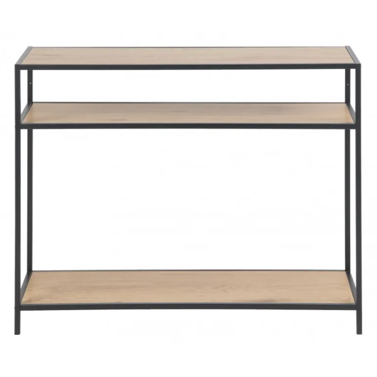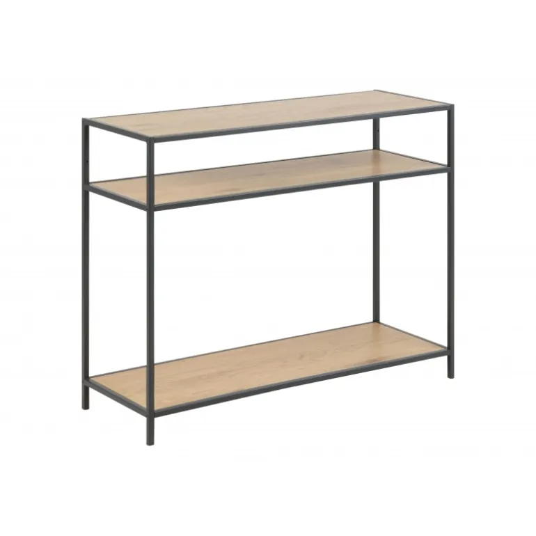 Seaford konsolbord papir vild eg 3, hylde 1 stk stel metal pulverlakeret ru, mat sort, 5 L:100 B:35 H:79 cm