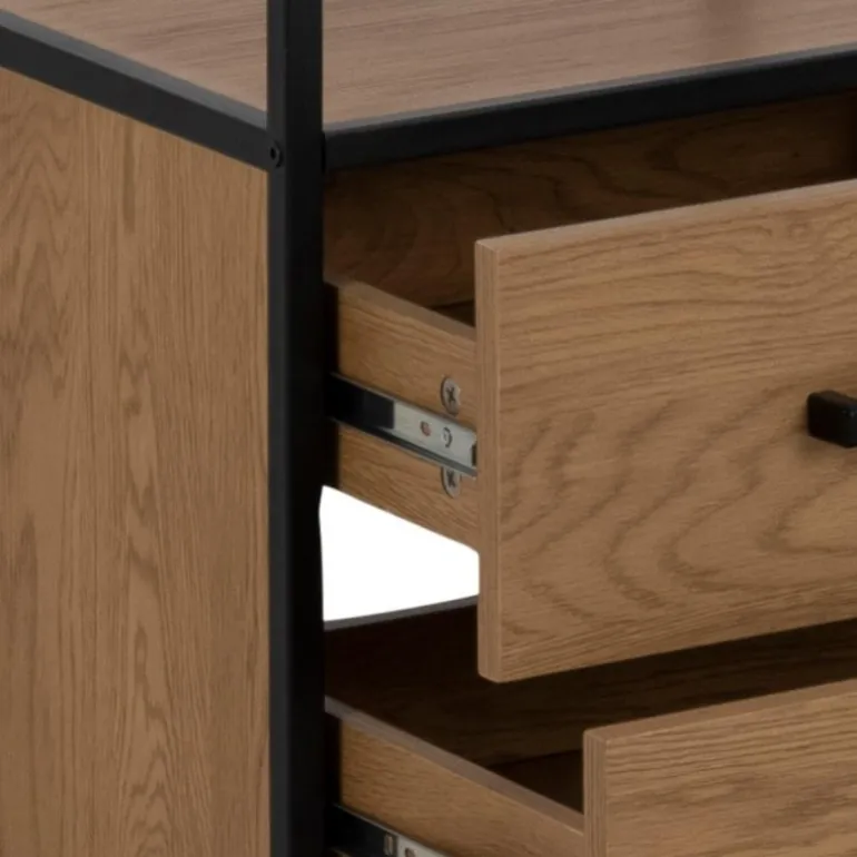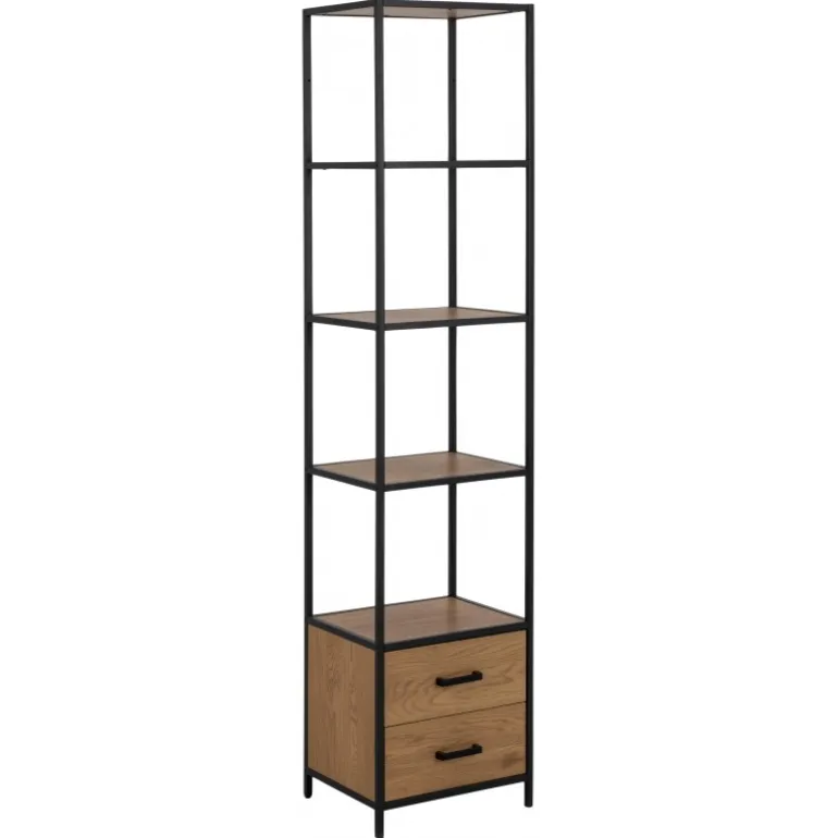 Seaford bogreol hylder 3 stk, skuffer 2 stk papir vild eg, stel metal pulverlakeret ru, mat sort L:42 B:35 H:185 cm