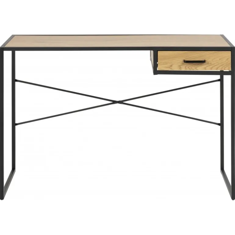 Seaford skrivebord papir vild eg 3, skuffer 1 stk, stel metal pulverlakeret ru, mat sort, 5 L:110 B:45 H:75 cm