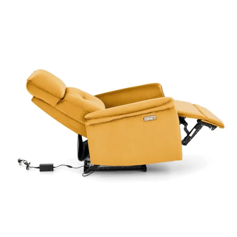 Oplev ultimativ komfort med SEMIR Hvilestol i sennepsfarvet velour. Denne stol er designet til at give dig en luksuriøs og afslappende oplevelse med dens elektriske foldningsfunktion og USB-stik. Med dimensionerne 80/90-170/92-108/46 cm passer denne stol perfekt ind i enhver stue eller læsehjørne. Det bløde velourmateriale i farven sennep (BLUVEL 68) tilføjer et elegant touch til dit hjem. Den robuste konstruktion sikrer holdbarhed, mens dens moderne design gør den til en stilfuld tilføjelse til dit interiør.
