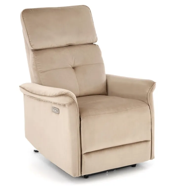 Oplev ultimativ komfort med SEMIR lænestol, beige. Denne lænestol er designet med elektrisk foldemekanisme og USB-stik, hvilket gør den perfekt til afslapning og moderne livsstil. Fremstillet af fløjlsstof i farven beige (BLUVEL 28), tilføjer den et strejf af elegance til enhver stue. Stolen har justerbare dimensioner på 80/90-170/92-108/46 cm, så du kan tilpasse din siddeoplevelse efter behov. Med en nettovægt på 38 kg er denne lænestol både robust og komfortabel.