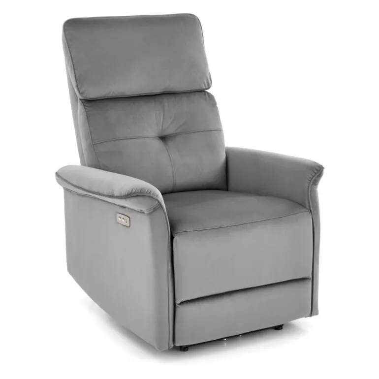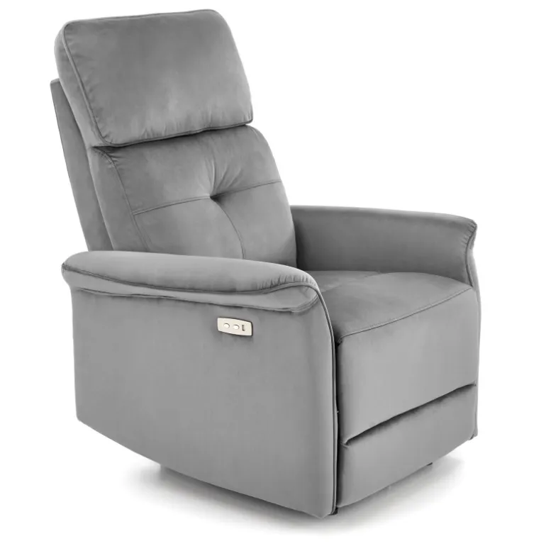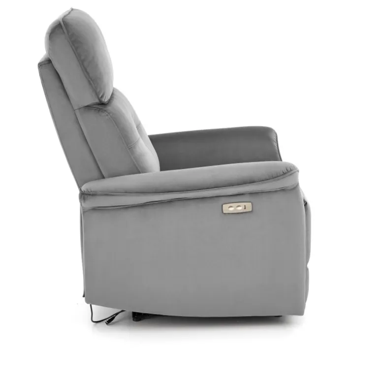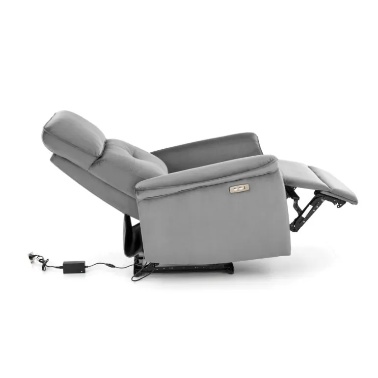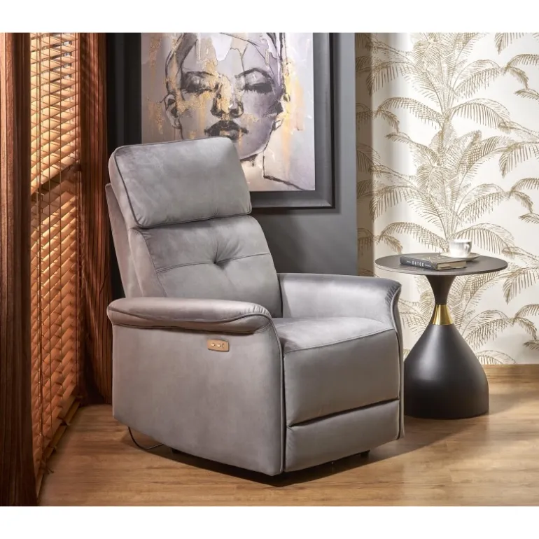 Oplev ultimativ komfort med SEMIR lænestol, grå. Denne lænestol er designet til afslapning og stil, perfekt til ethvert hjem. Med dimensioner på 80/90-170/92-108/46 cm og en elektrisk foldningsfunktion, kan du nemt justere stolen til din ønskede position. Den er udstyret med en USB-stik, så du kan oplade dine enheder, mens du slapper af. Materialet i fløjlstof i farven grå (BLUVEL 14) giver et elegant og moderne udseende, der passer til enhver indretning.