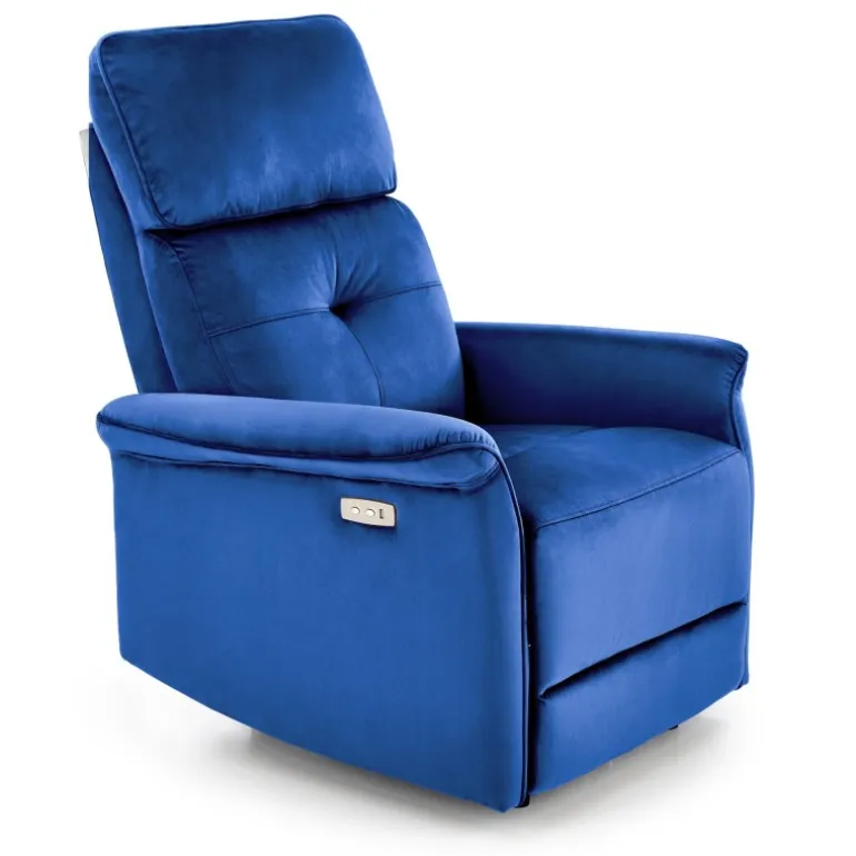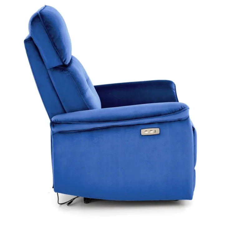 SEMIR lænestol i MørkeBlå er den perfekte kombination af komfort og stil til dit hjem. Denne lænestol har en elektrisk foldemekanisme og en praktisk USB-plug, hvilket gør den ideel til moderne livsstil. Med dimensioner på 80/90-170/92-108/46 cm, passer den perfekt i ethvert rum. Materialet er lavet af velourstof i en elegant MørkeBlå farve (BLUVEL 86), hvilket tilføjer et strejf af luksus og varme til din boligindretning.