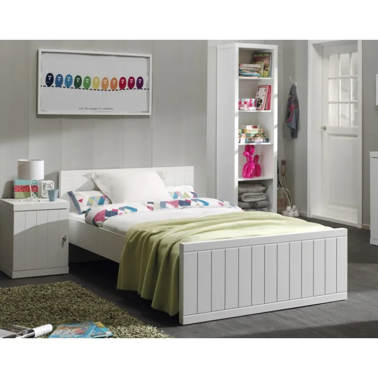 Seng 120×200 – Robin i hvid MDF med lamelbund