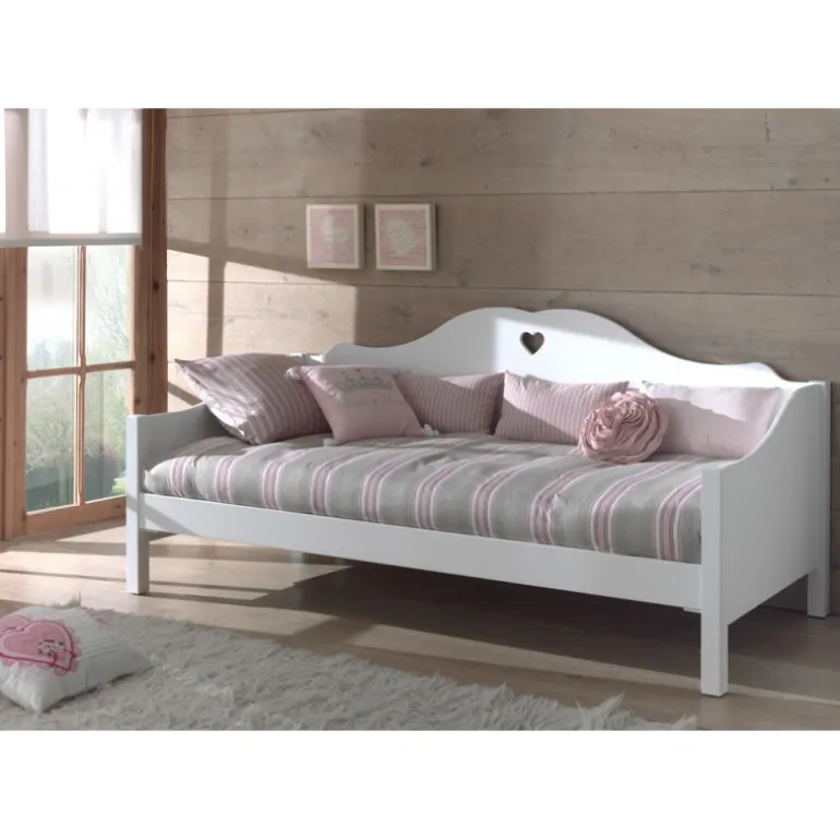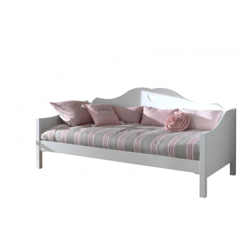 Seng 90 x 200 cm AMORI – hvid dagbænk med romantiske detaljer