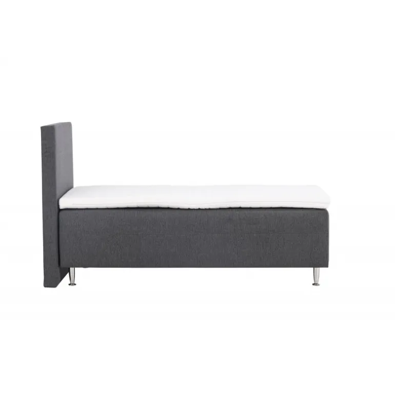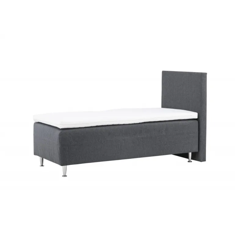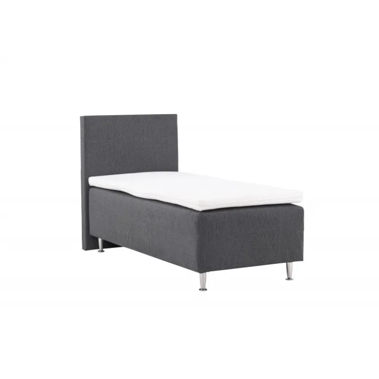 Velkommen til din nye oase af komfort og elegance med vores seng Mesa! Mesa er den ultimative seng, der kombinerer stil, komfort og funktionalitet på en fortryllende måde. Hvis du værdsætter en god nattesøvn og en afslappende atmosfære i dit soveværelse, er Mesa den perfekte seng for dig. Mesa er en 90 cm bred rammeseng betrukket med et elegant mørkegråt stof. Den dybe, mørke farve tilføjer et moderne touch til din indretning og skaber en følelse af luksus og sofistikering. Stoffet er behageligt at røre ved og skaber en varm og indbydende atmosfære i dit soveværelse. Sengen er udstyret med plastikben, der ikke kun giver stabilitet men også skaber en elegant kontrast til det mørke stof. Du kan være sikker på, at Mesa er en seng, der vil stå tidens prøve og give dig mange nætter med rolig søvn. Sengens høje hovedgærde er ikke kun en stilfuld detalje men også praktisk, når du vil læne dig tilbage, læse en bog eller se TV i sengen. Sengen har en fasthed; den er solid og giver dig den rette balance mellem støtte og komfort for en god nats hvile. Pynt din Mesa med bløde puder og luksuriøst sengetøj for at skabe den perfekte hyggelige følelse i dit soveværelse. Kryb i seng hver aften og oplev den afslappende fornemmelse af at være omgivet af skønhed og komfort. Mesa er ikke bare en seng; det er din personlige tilflugt fra hverdagens stress og krav. Forkæl dig selv med den bedste søvn, du fortjener.