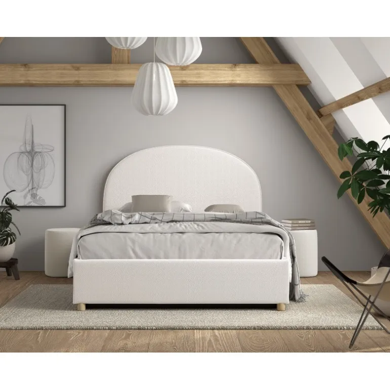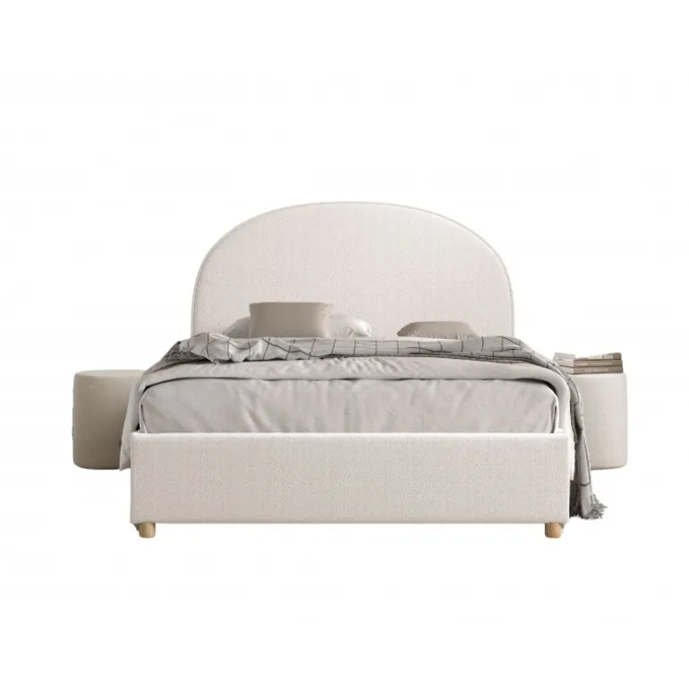 Seng med opbevaring 140 x 200 – Moon, hvid bouclé