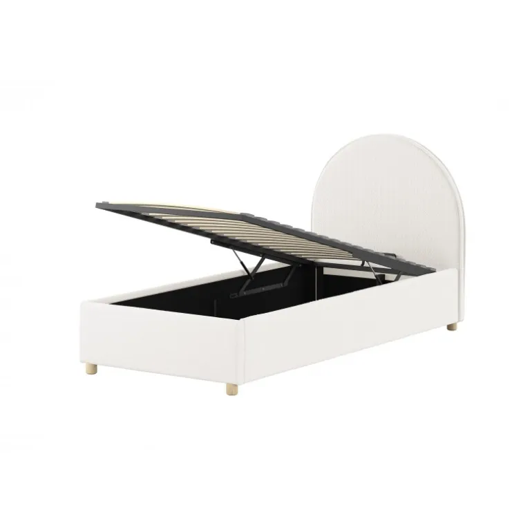 Seng med opbevaring 90 × 200 cm – Moon, hvid bouclé