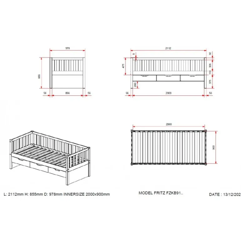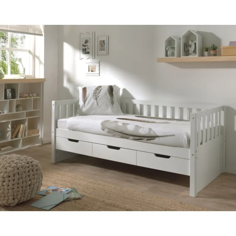 Seng med skuffer 90 x 200 cm – Fritz, hvid