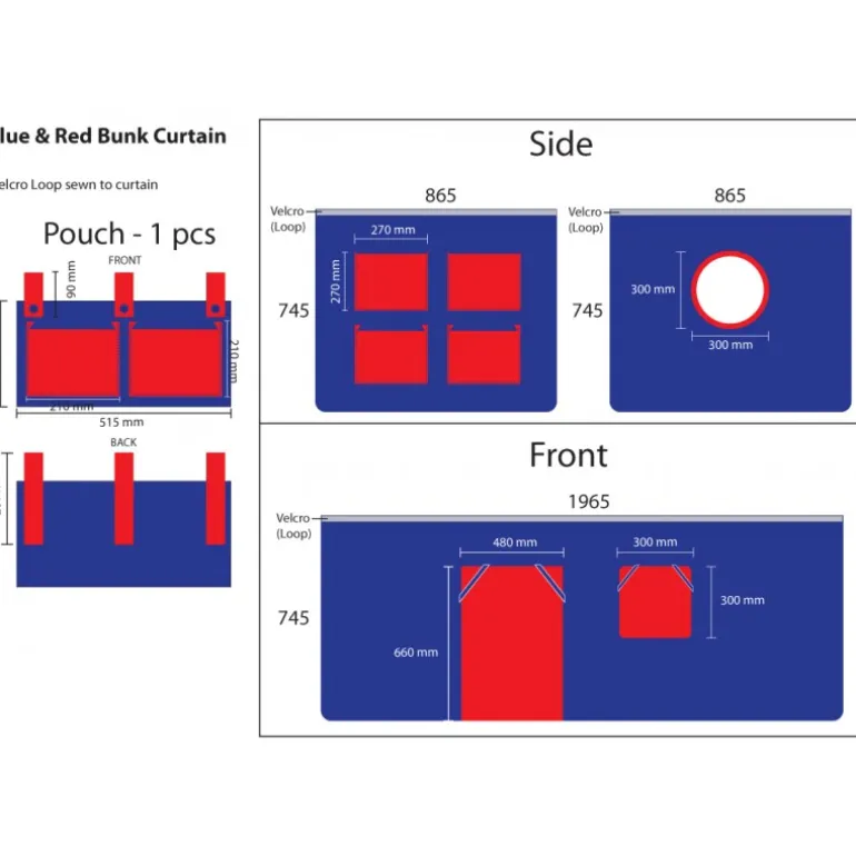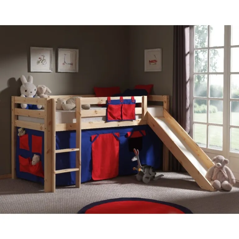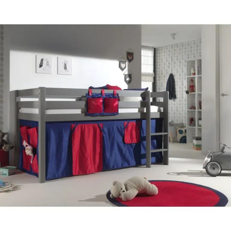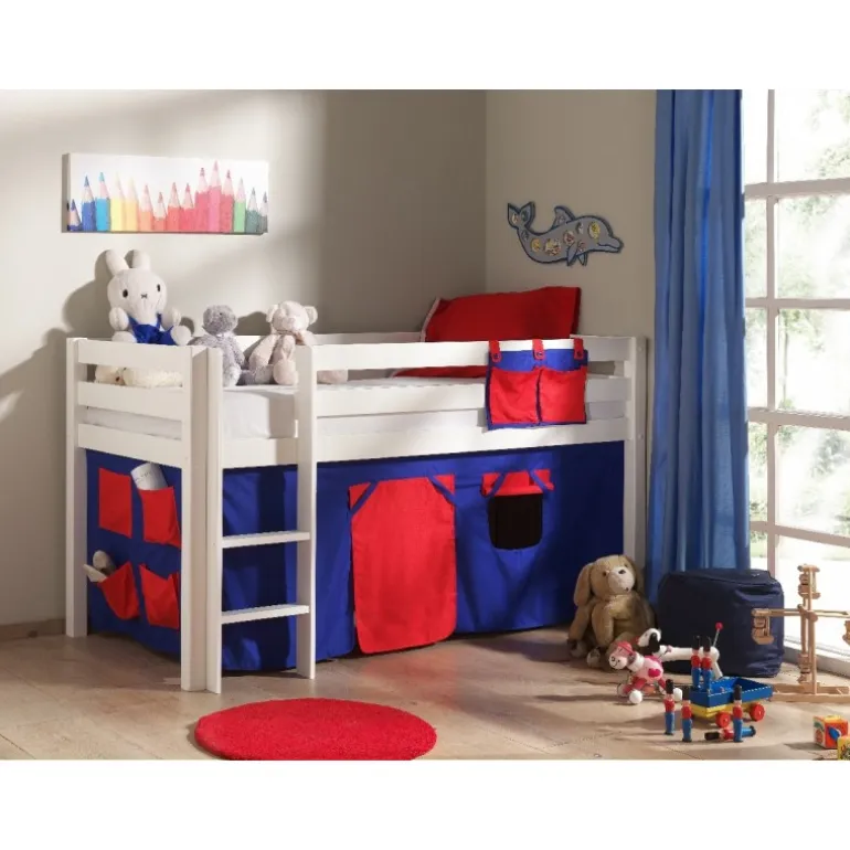 Sengeforhæng til mellemhøj seng – blå/rød (Domino)
