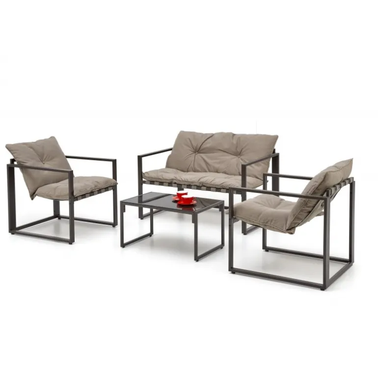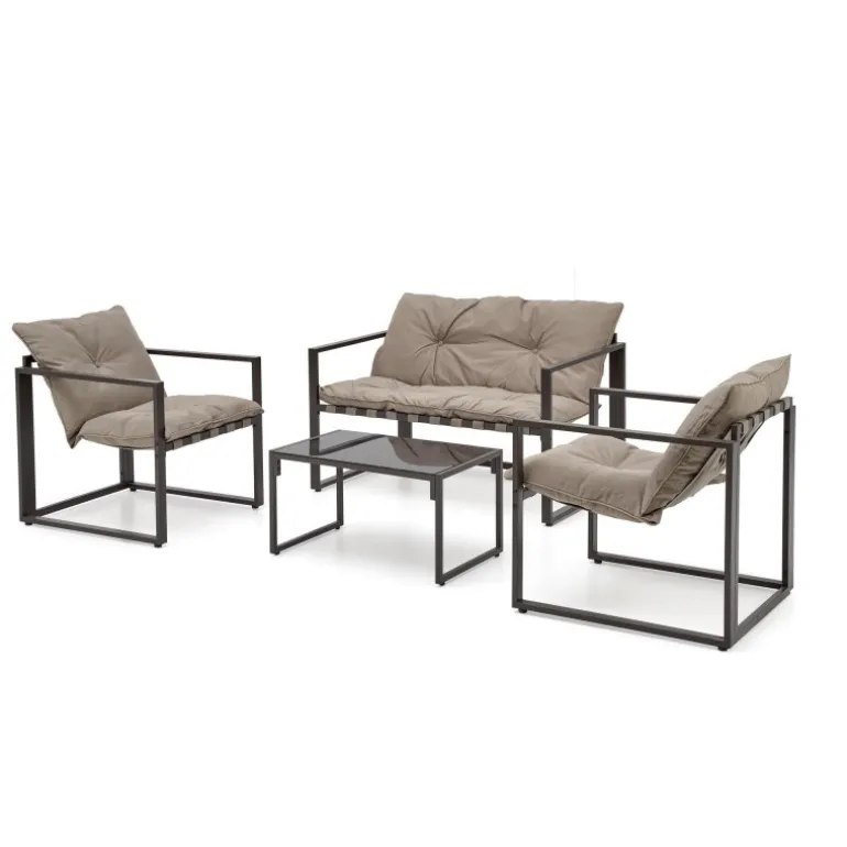 Oplev ultimativ komfort og elegance med SHARK havemøbel sæt. Dette stilfulde sæt inkluderer en sofa, to stole og to kaffeborde, perfekt til enhver have eller terrasse. Fremstillet af pulverlakeret stål, glas og stof i en attraktiv mørkebrun og cappuccino farvekombination, er dette sæt både holdbart og æstetisk tiltalende. Perfekt til afslapning og underholdning udendørs.