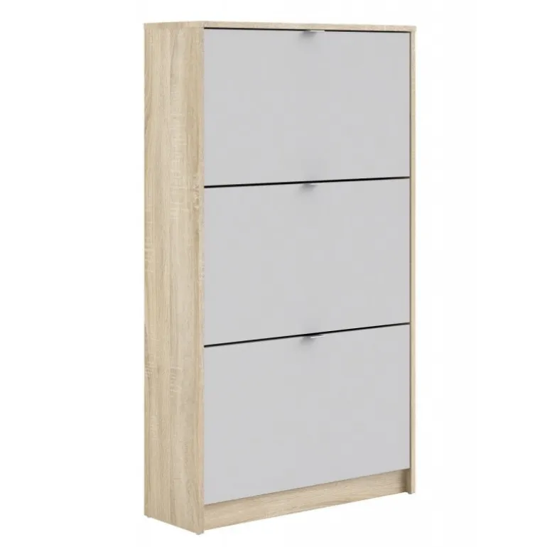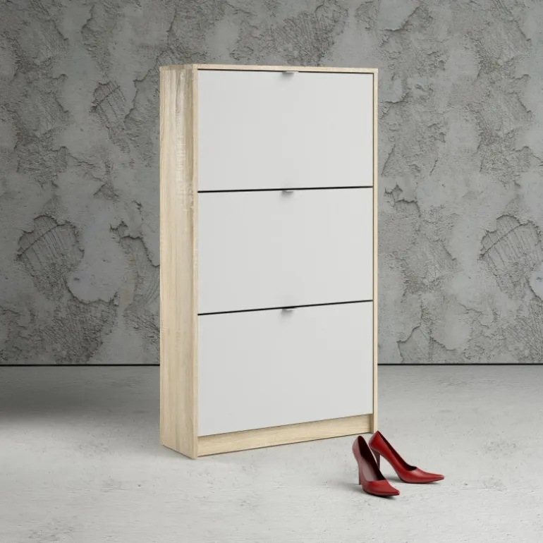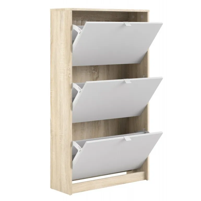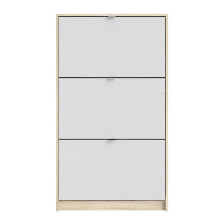Shoes Skoskab 3 klaplåger m. 2 rum – Ege struktur/Hvid
